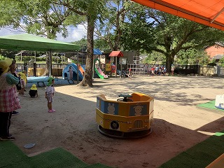 「ヒョーヒョー!!」と奇妙な声をあげながら、ヨッカブイが園庭へと入ってきました(驚)!!