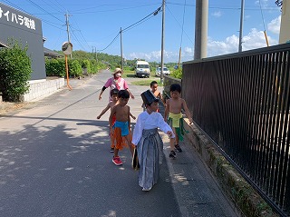 しかし、昨年度に引き続き、新型コロナウイルス感染拡大防止の為、集落でおこなわれる「十八度踊り」は中止となり、園独自の「十八度踊り」へ変更。