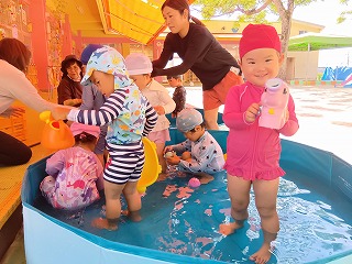 この夏、感覚遊びや感触遊びを思い切り楽しんでいる、高橋保育園のお友達♪