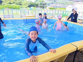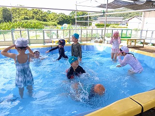 来年度、小学校へあがる年長児を中心として、一歩進んだプールの時間を・・・☆