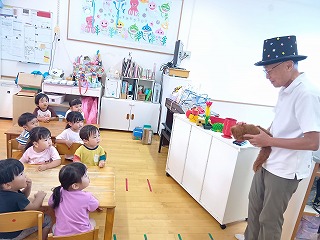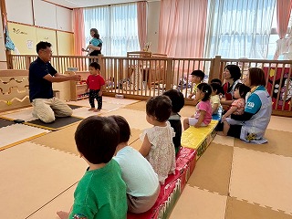 園長先生がプールに入り、水の楽しさを教えてくださいました♪