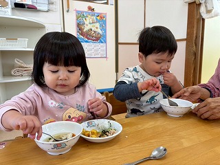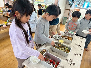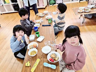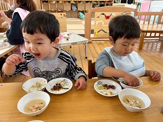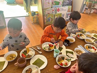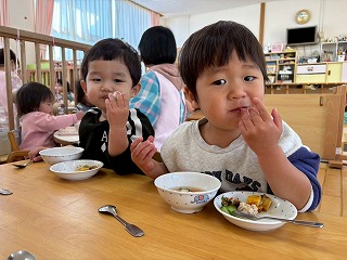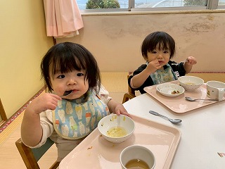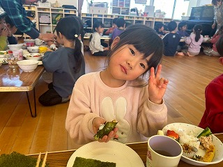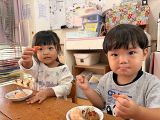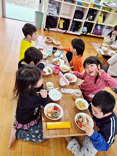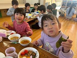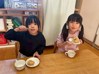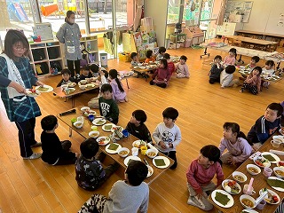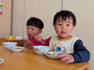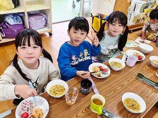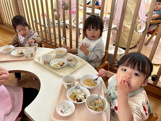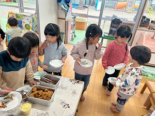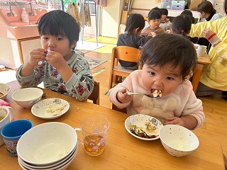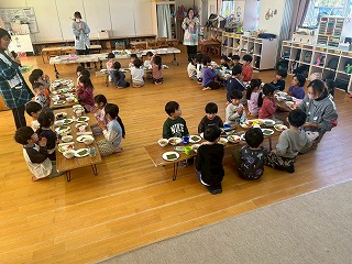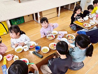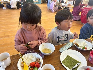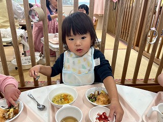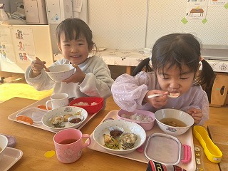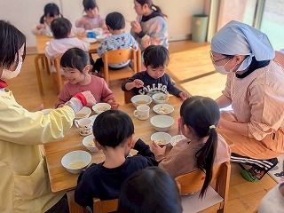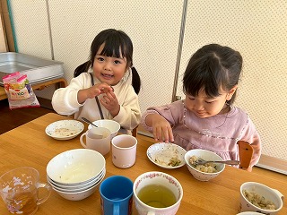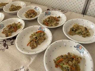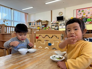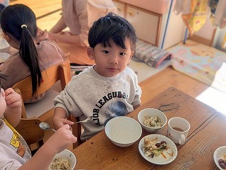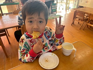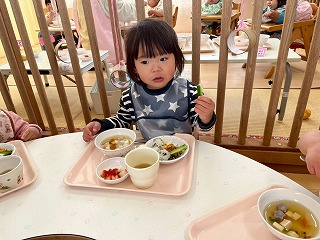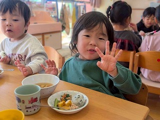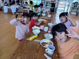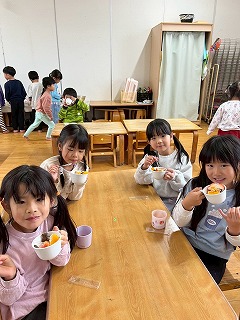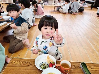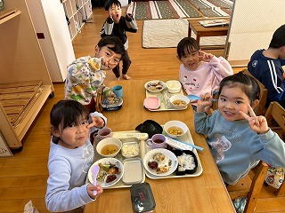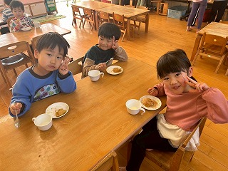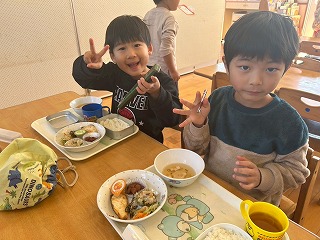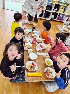 と、みんなを見かけた麻美先生が、給食室から顔をのぞかせ教えてくれました♡