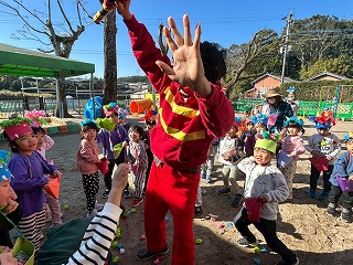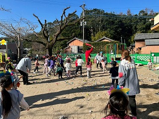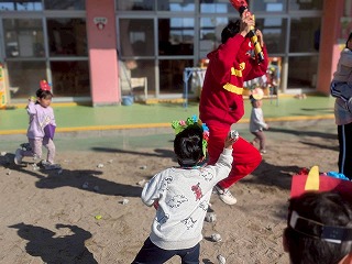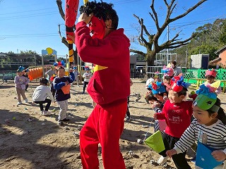 と、勇気を振り絞って手作り豆を投げつけるお友達!!