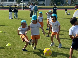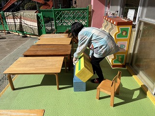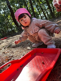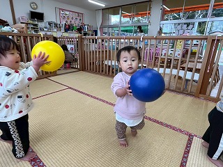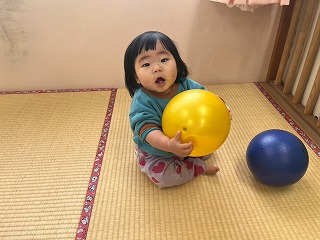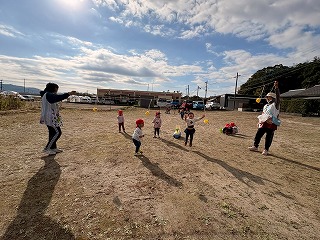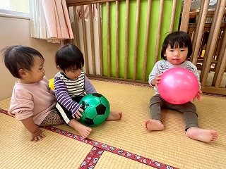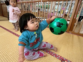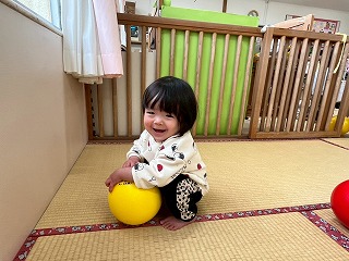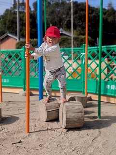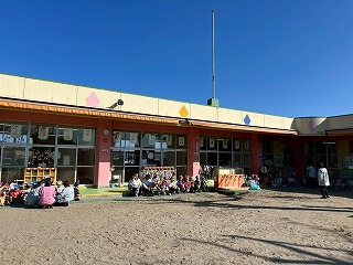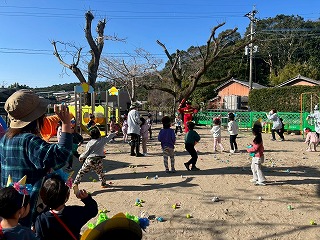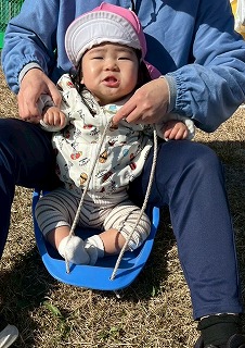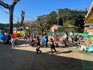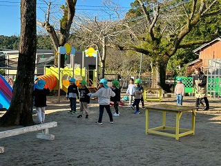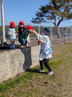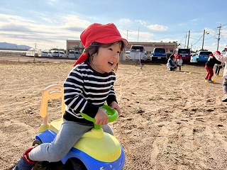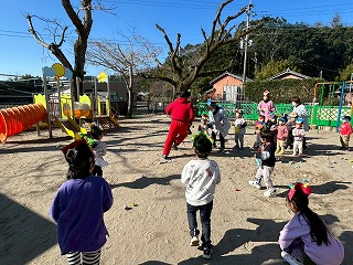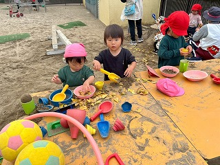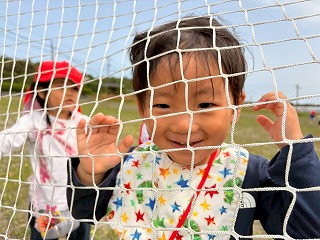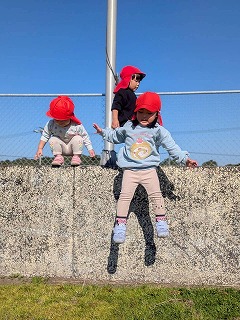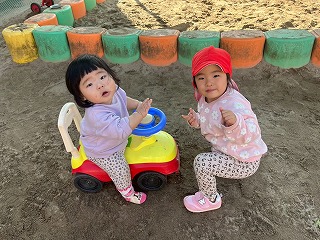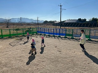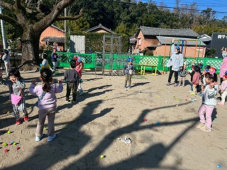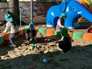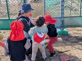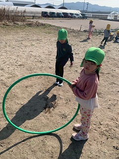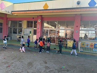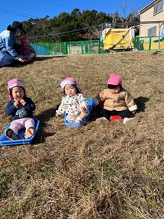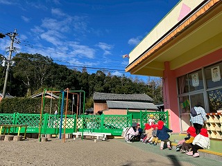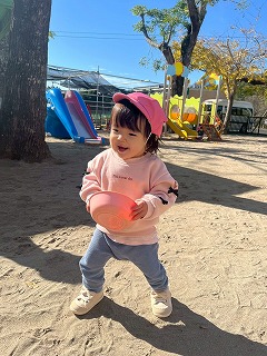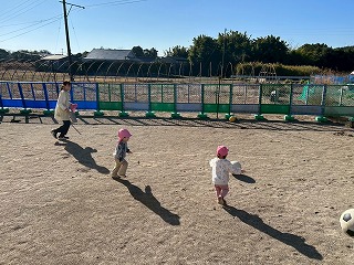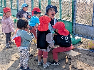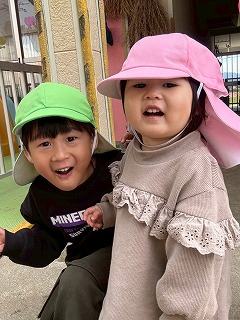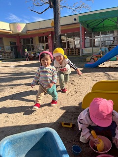 暖かい陽が差す園庭へと、元気いっぱい出てきました♪