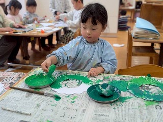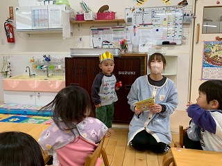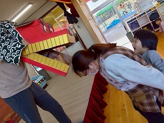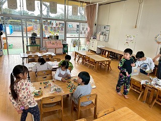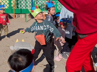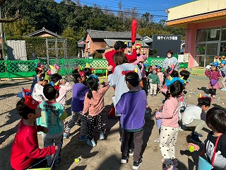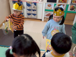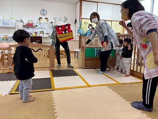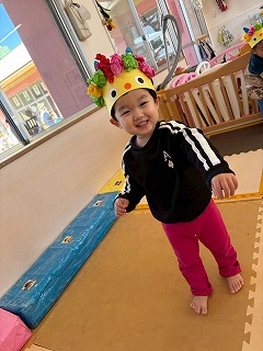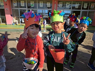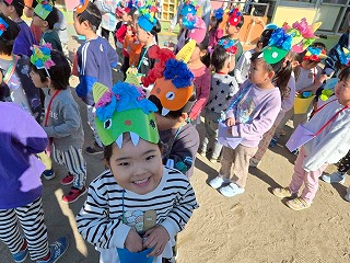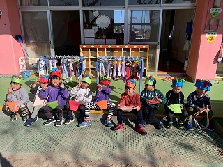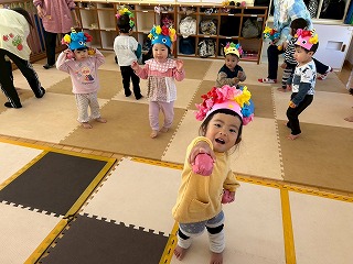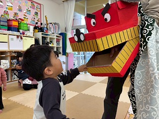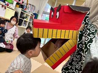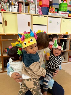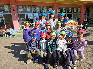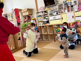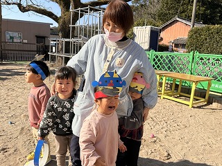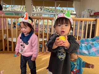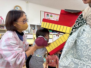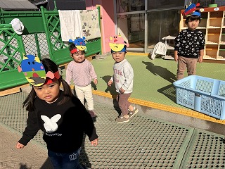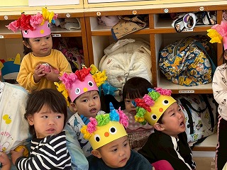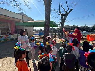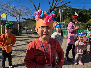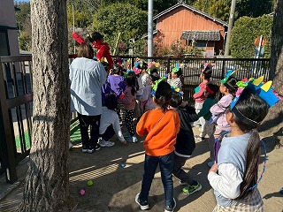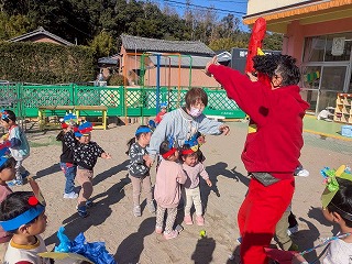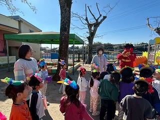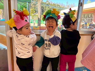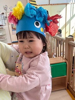 お友達は、各クラスごとに工夫が凝らされた可愛いお面をかぶって、鬼さんに変身♡