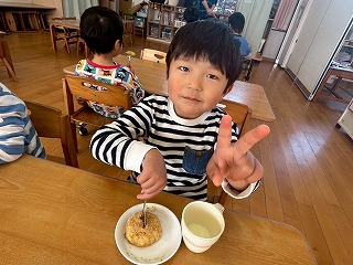きっと、美味しい朝ごはんが出来ているだろうから、そろそろ園へと帰ろう!!