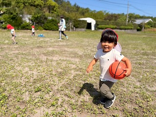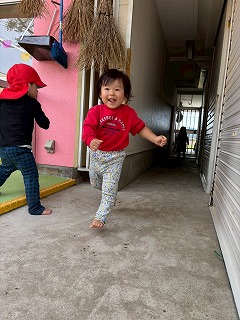 全力ダッシュで、園庭へと飛び込んできました♪