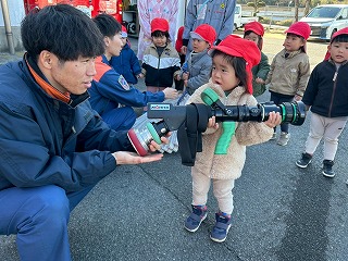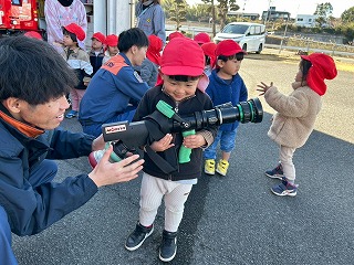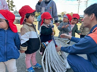 積載されている、ホースを実際に持たせてもらったお友達は、とても嬉しそう♡