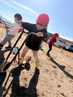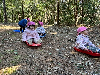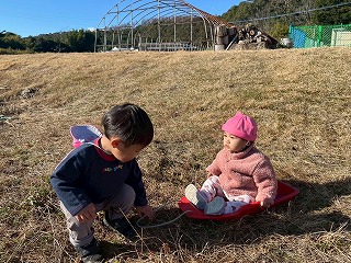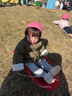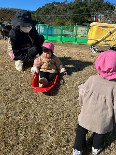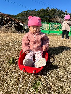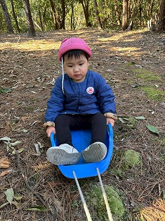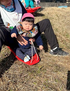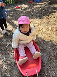 先生たちにソリを引いてもらい、とても楽しそうなお友達の姿がありました♪