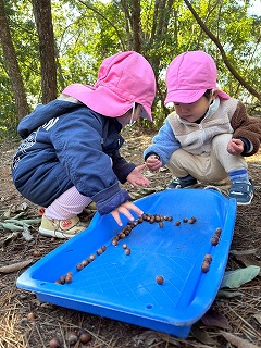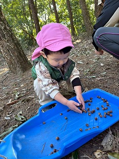 大きな葉っぱや、どんぐりをたくさん見つけて