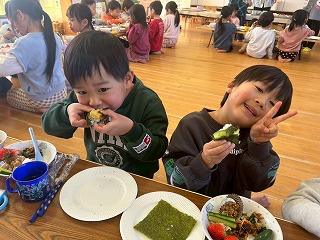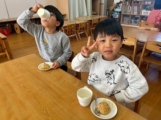 今年は、お米も豊作だったようで、たくさん食べるみんなからも、田の神様に感謝の気持ちを伝えます♪