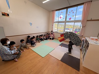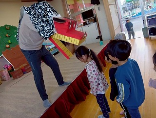 そんなみんなを見かねた鬼さんは、お友達の前に座りこみ