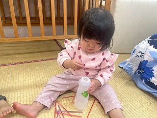 寒天遊びの良いところは、万が一、口に入っても大丈夫!!
