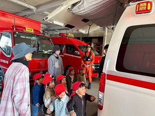 道路から眺めるだけで構わないので、消防署と救急車を見せてもらいたいお願いしたところ、大変お忙しいにも関わらず、快く承諾していただきました☆